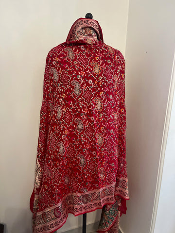 Pure Georgette Dupatta x Minakari x Bandhej x Floral x Shade of RED