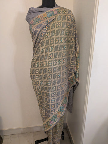 Pure Georgette Saree x Minakari Bandhej x Floral x Shade of Grey and Sage (Dual Tone)